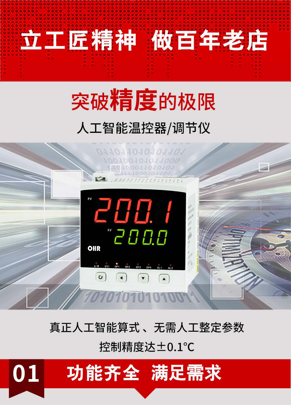• 人工智能調節儀采用真正的人工智能算式,儀表啟動自整定功能,可以根據被控對象的特性,自動尋找參數以達到很好的控制效果,無需人工整定參數。控溫精度基本達±0.1℃,無超調、欠調,達國際先進水平。