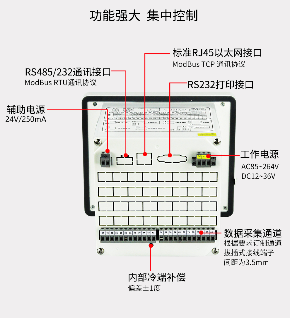 彩色無(wú)紙記錄儀/溫度記錄儀用新型大規(guī)模集成電路,對(duì)輸入、輸出、電源、信號(hào)采取可靠保護(hù)和強(qiáng)抗干擾設(shè)計(jì)。48路萬(wàn)能輸入??蓭S232/485通訊接口,以太網(wǎng)接口,微型打印機(jī)接口和USB接口,SD卡插座;可提供傳感器配電;具有強(qiáng)大的顯示功能,實(shí)時(shí)曲線顯示,歷史曲線追憶,棒圖顯示等。