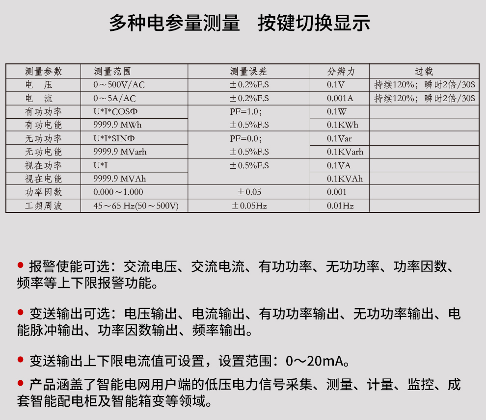 單相電量表為新一代可編程智能儀表,它采用大規模集成電路,應用數字采樣技術,對單相電氣線路中的電壓、電流、有功、無功、功率因素、相位值、頻率、有功電能、無功電能及視在功率進行實時測量與顯示。